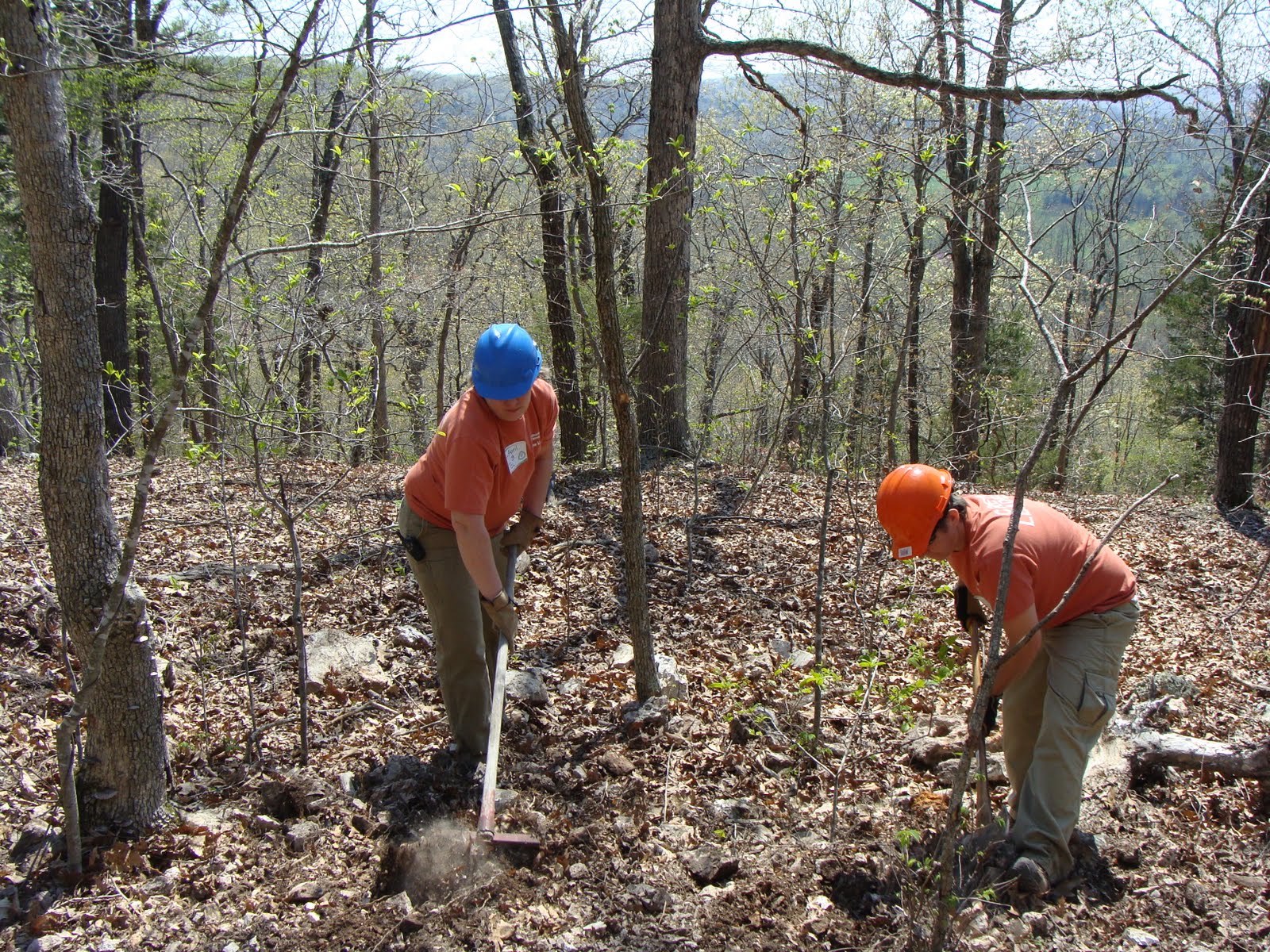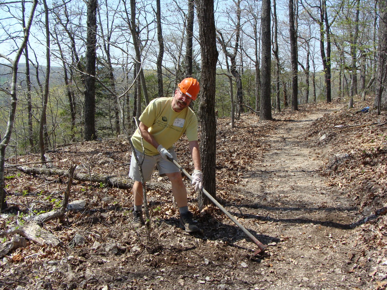 The Courtois Gap in the wonderfully scenic Ozark Trail is now history thanks to the hard work of over 200 volunteers who devoted their time and energy in this great cause! The weather was beautiful as were the campsites at Bass River Resort and it was a great opportunity to see spring budding out all over this part of the Ozarks.