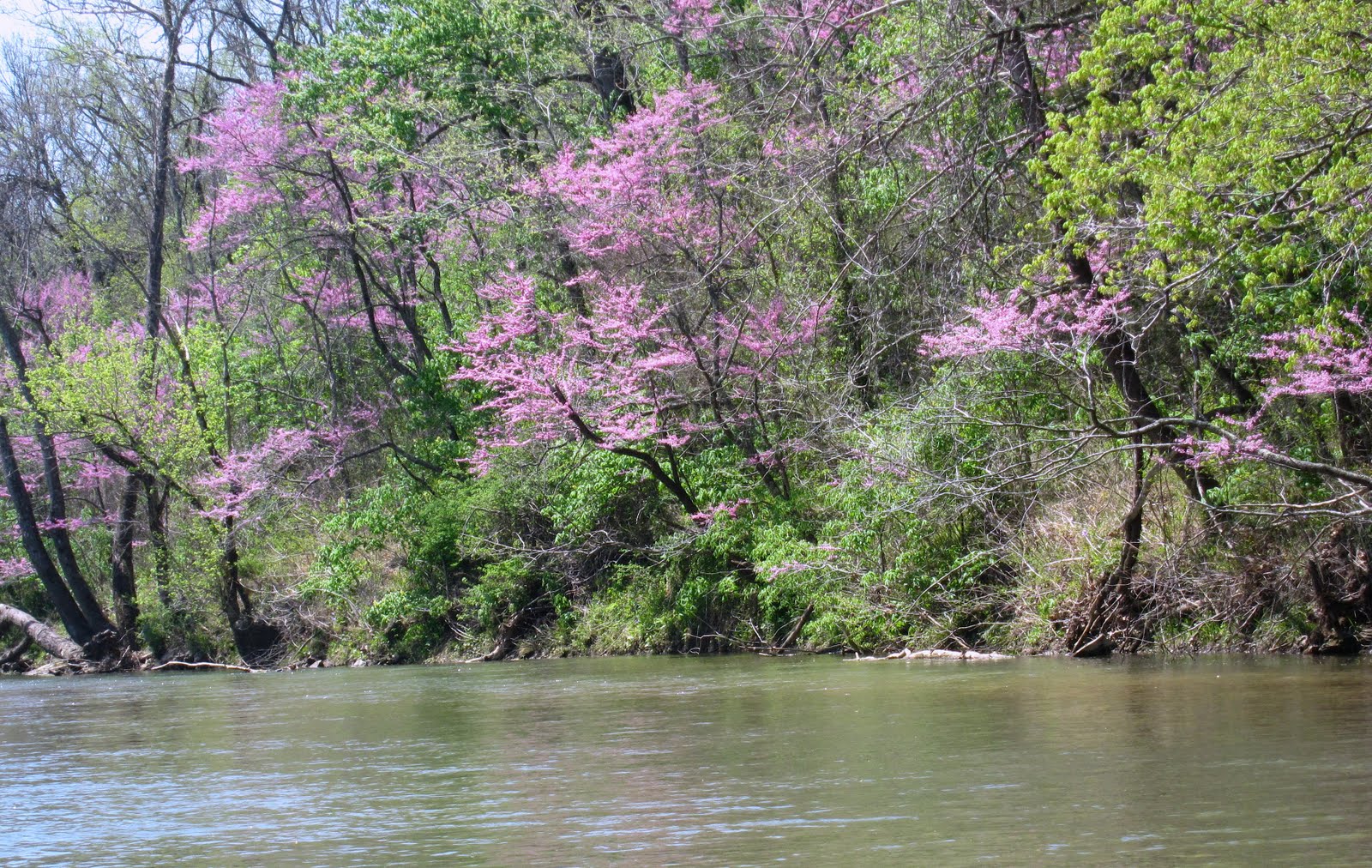 Late afternoon (April 10th) and evening pictures of the Current River and it's valley near Cedargrove, MO. The river was running full; about 1-2 feet above normal stage, the redbud was in full bloom; dogwood coming out, temperature 75F, clear skies, light wind. The next 7 days looks to have a nice forecast and the water is perfect. Go take advantage for at least one day !! Stop by Alpine Shop for gear and updates on floats. Love to see you.